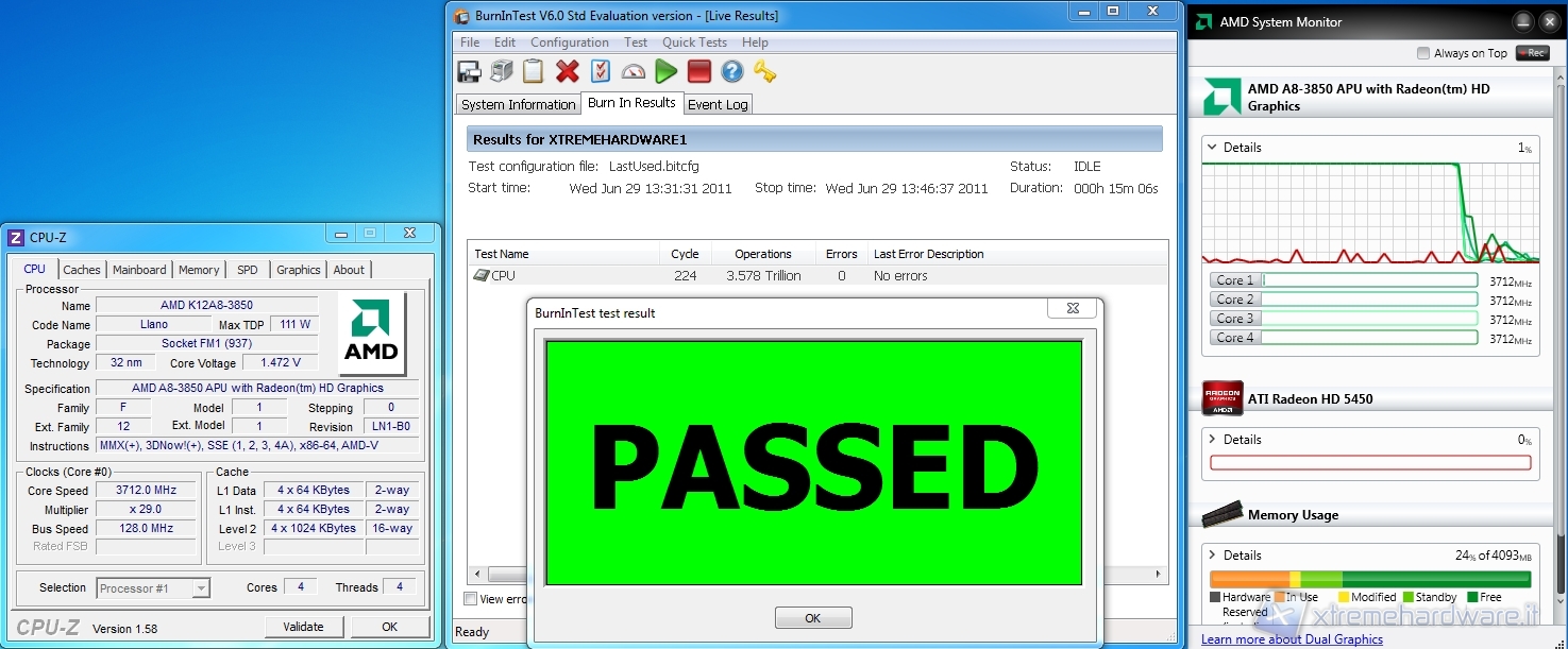 After the CPU overclock we removed the dedicated Radeon HD 5450 and, once brought back the CPU frequency to the default, we did overclock the GPU acting only on it, managing to bring the frequency to 870MHz.