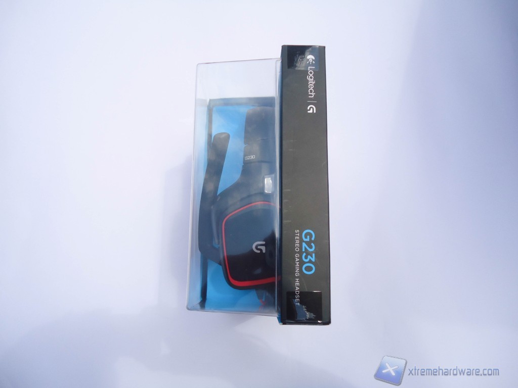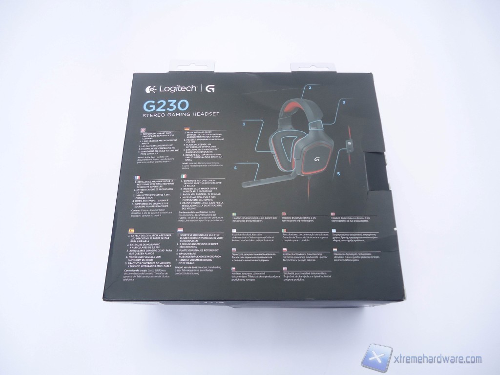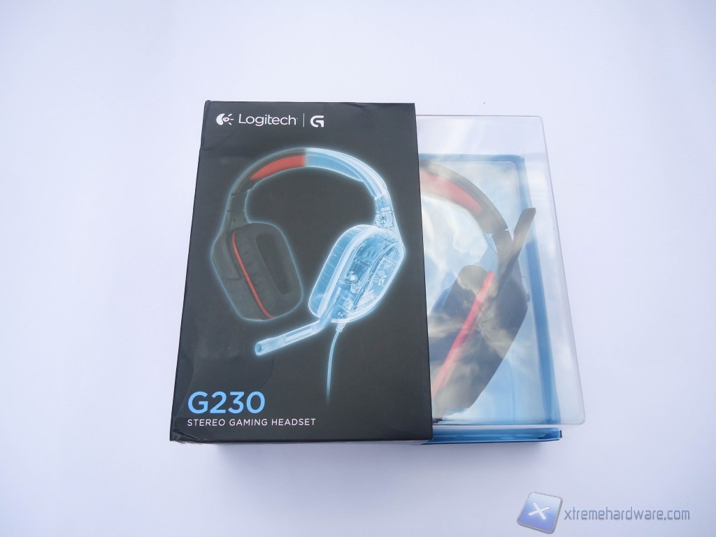 La scatola in cui sono contenute le Logitech G230 è di notevole dimensioni e di forma squadrata. Frontalmente troviamo il nome del prodotto oltre ad una finestra di grandi dimensioni che permette all’utente di osservare il prodotto prima dell’acquisto.